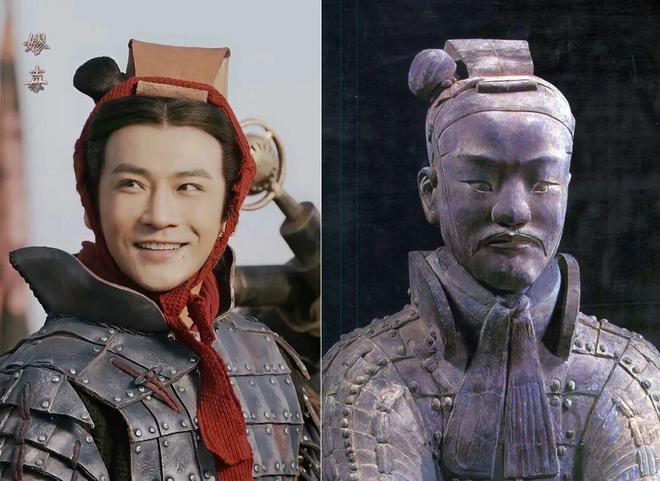 兵马俑中还有梳“歪髻”戴正冠的御手俑,发髻从小冠一侧“漏”出。《大秦赋》的造型设计显然注意到了这个,有几个造型明显借鉴于此。