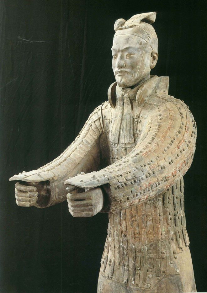 但有意思的是25年前的《寻秦记》里,古天乐竟然还有一个鹖冠造型,借鉴的应该是一号坑的高级军吏俑。虽然说TVB几乎从不考据,但也少了那种为了造型而造型的包袱,整体的造型气质竟然不输于20年后的《大秦赋》(古天乐建模加分)。